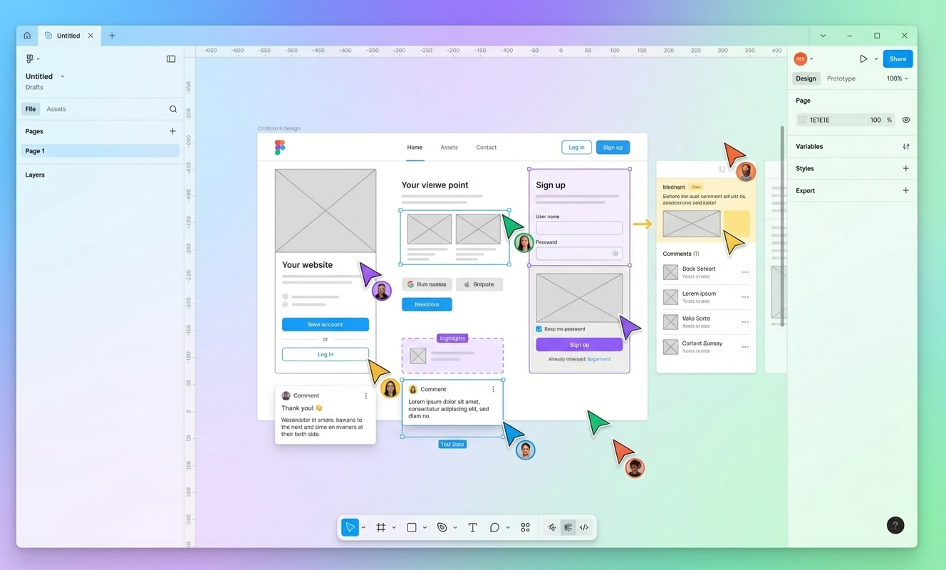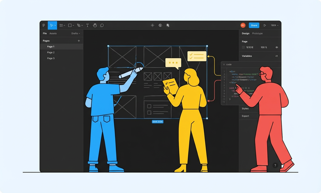 Figma는 실시간 협업을 중심으로 설계된 디자인 플랫폼으로, 팀원들이 동시에 같은 화면을 보며 설계·피드백·의사결정을 할 수 있도록 돕습니다. 디자이너뿐 아니라 PM, 개발자, 마케터까지 참여하는 협업 환경에 최적화되어 있습니다.