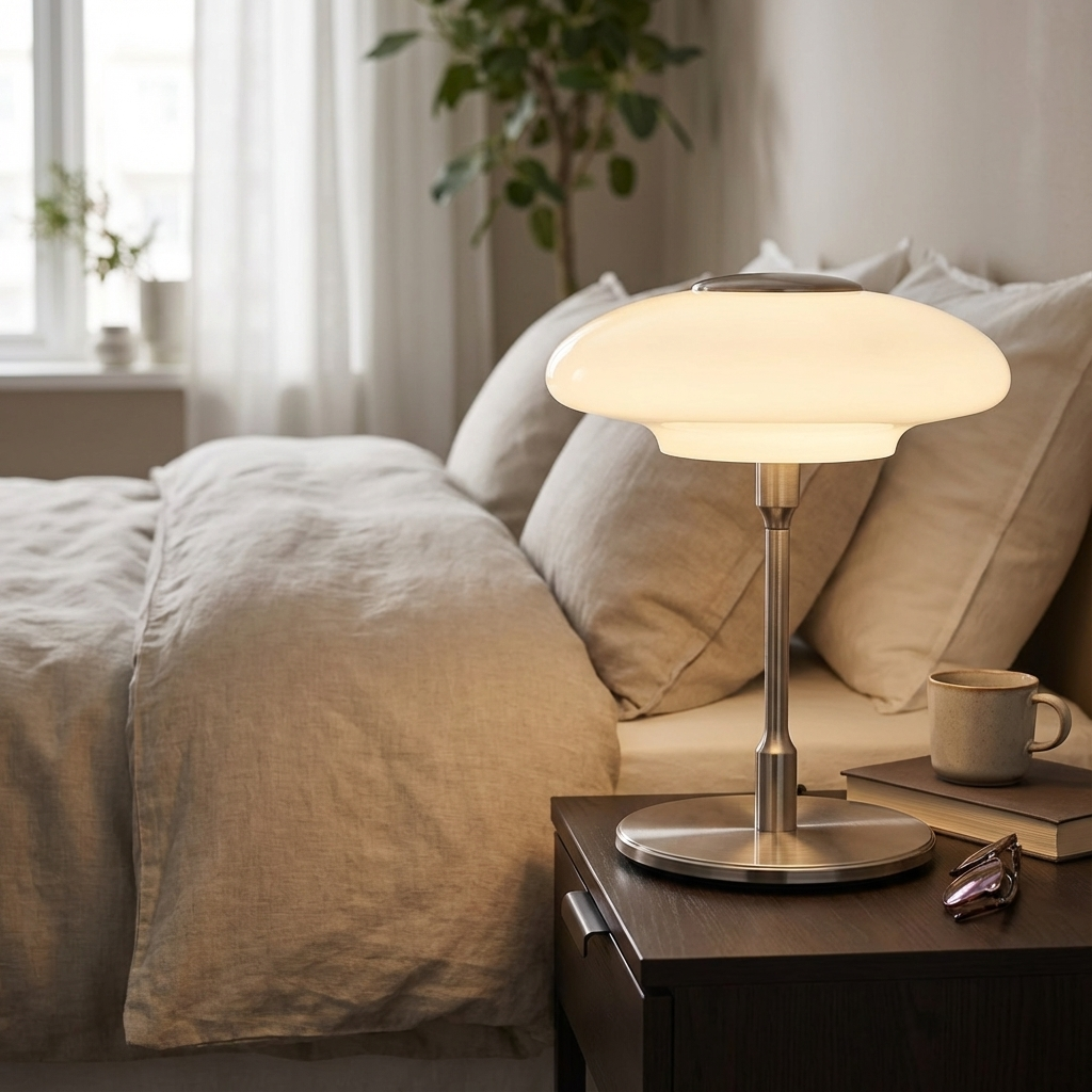 - 침실: 침대 옆 협탁 위 취침 전 무드등
