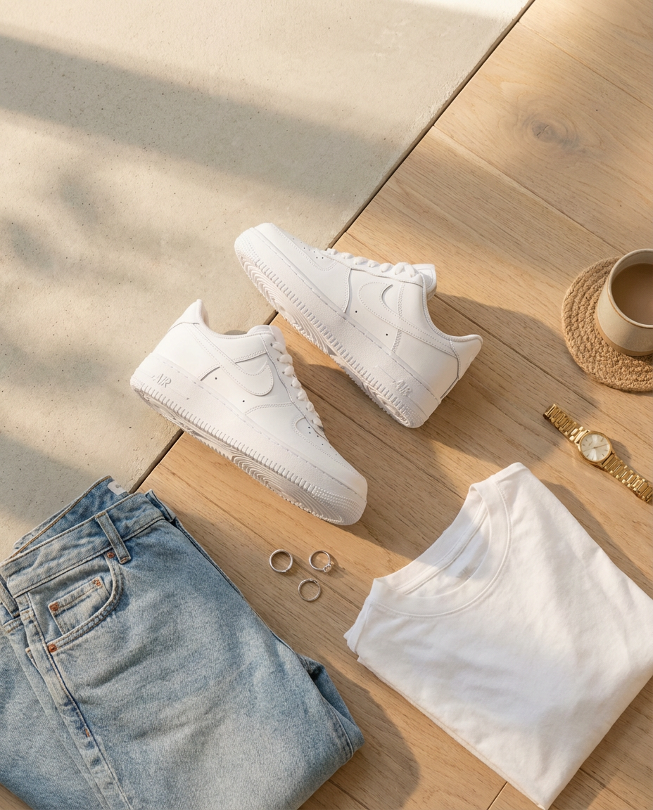 에어 포스 1 '07 트리플 화이트는 색이 아니라 실루엣으로 스타일을 만드는 신발입니다. 데님, 슬랙스, 조거, 스커트처럼 옷의 무드가 달라도 흰색의 ‘정돈된 느낌’이 전체 룩을 깔끔하게 묶어줍니다. 특히 상의가 컬러풀하거나 패턴이 강한 날에도 발끝이 과하게 튀지 않아서 밸런스 잡기 좋습니다.