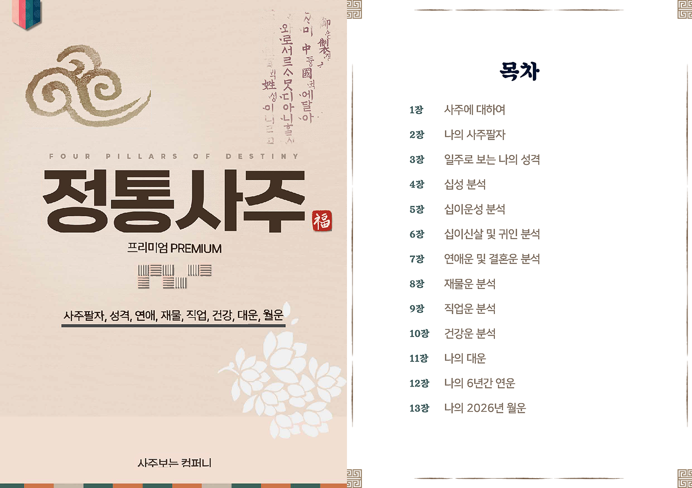 - 프리미엄 정통사주 중심: 평생을 관통하는 핵심 흐름 분석